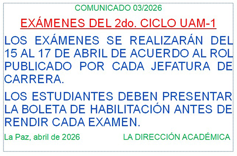 Exámenes 1er Ciclo UAM-2 Del 25 de mayo al 30 de mayo de 2026 |