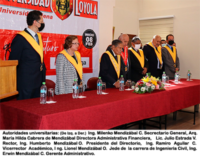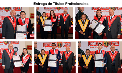 Con la asistencia del Presidente del Directorio de la Universidad Loyola Ing. Humberto Mendizábal Orellana, el Rector Lic. Julio Estrada Vásquez, autoridades universitarias, jefes de carrera y público en general, se hizo entrega de sus Títulos a los nuevos profesionales de Loyola.