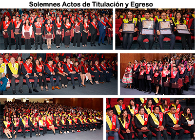 El día miércoles se llevaron a cabo los actos de Titulación, en los dos horarios, recibiendo sus Diplomas Académicos y Títulos, los flamantes profesionales de las diferentes carreras de la universidad, estudiantes de Diplomado y Maestrantes.