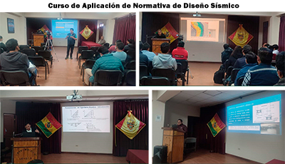 Curso organizado por el Colegio de Ingenieros Civiles Deptal. La Paz, el Colegio de Ingenieros Civiles de Bolivia, en coordinación con la carrera de Ingeniería Civil de la Universidad Loyola a través de su jefe de carrera Ing. Lionel Mendizábal Orellana y del Presidente del Directorio Ing. Humberto Mendizábal Orellana.