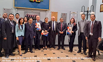 El jueves 18 de mayo del presente a horas 20:00, autoridades de la Universidad Loyola y docentes de la carrera de Derecho, recibieron un Reconocimiento a su trayectoria docente, hecha por miembros del Directorio del Ilustre Colegio de Abogados.