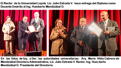 Acto en el cuál se hizo entrega de una distinción especial al Ing. Humberto Mendizábal Orellana Presidente del Directorio, como Docente Emérito por sus 49 años de docencia universitaria, ejercicio profesional y fundador de la Universidad Loyola.