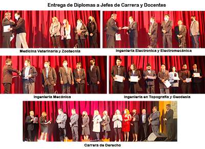 Posteriormente se hizo entrega de Diplomas a la Labor Docente, a jefes de carrera y docentes.