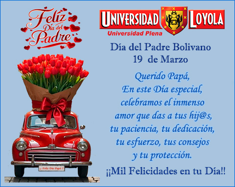 La Universidad Loyola, envía un gran saludo de felicitación a todos los papás de la comunidad de Loyola, deseando que este día junto a su familia, este lleno de amor y alegría.