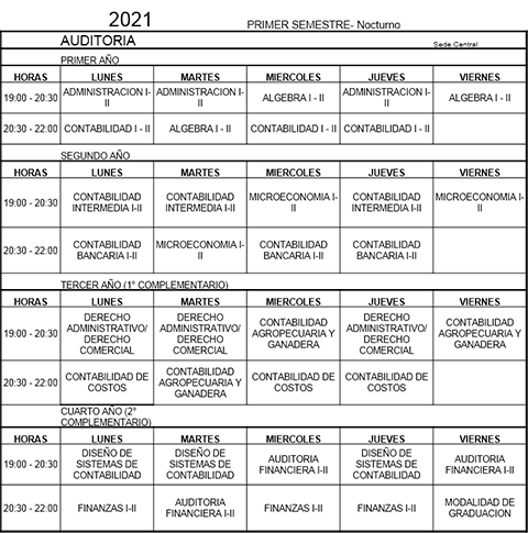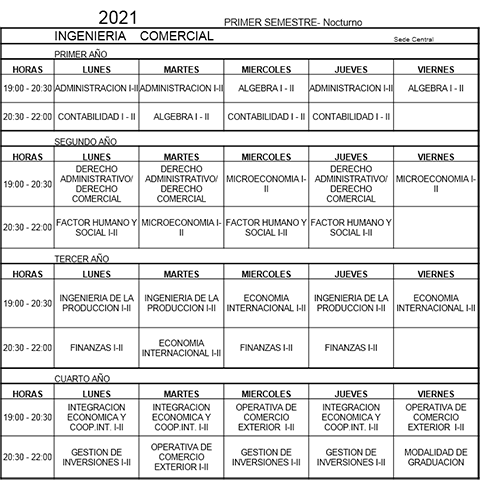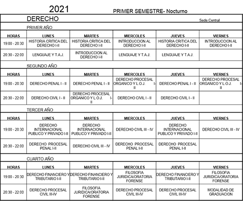 Horarios de Clases 2021 Nocturno Sede Miraflores