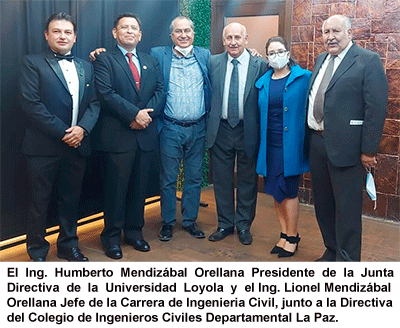Debemos resaltar que en el programa de ponentes que se presentaron en este congreso, fuimos representados por el Ing. Alberto Ferrufino Montoya docente de la carrera de Ingeniería Civil, con el tema “El Uso de los Materiales Reciclados en Mezclas de Hormigón y su Importancia en la Mitigación Medio Ambiental”, docente designado por los ingenieros Lionel Mendizábal Orellana Jefe de la Carrera de Ingeniería Civil y Humberto Mendizábal Orellana Presidente de la Junta Directiva quienes también participaron representando a la Universidad Loyola.