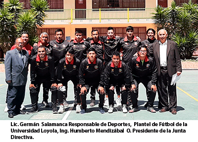 El plantel de fútbol de la Universidad Loyola que participa en la AFLP en la categoría Primera “B” con los Directores de la Universidad, el objetivo de los jugadores es volver a la Primera “A” del futbol paceño, es digno de mencionar que todos los integrantes son estudiantes de la Universidad Loyola.